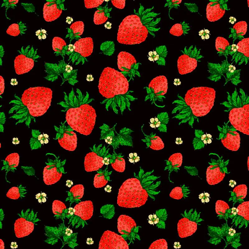 Tricoline Fernando Maluhy - Morangos Fundo Preto - 100% Algodão - C03