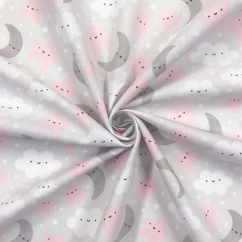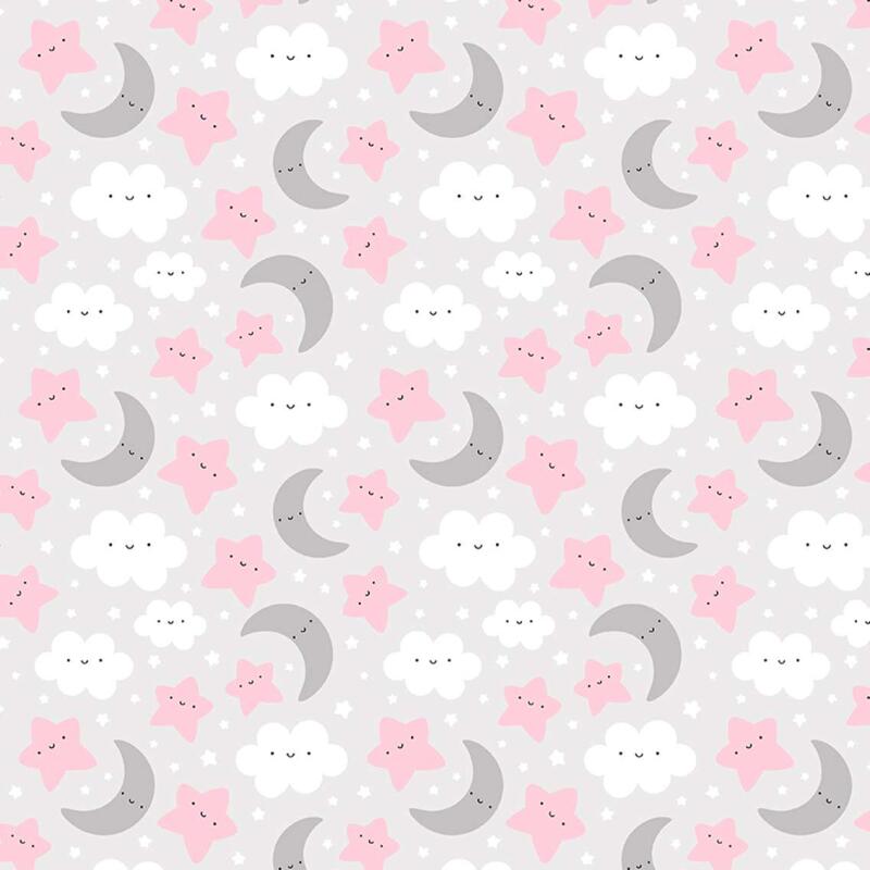 Tricoline Estampada - Céu Rosa, Branco E Cinza - 100% Algodão - 1,50M Largura - Variante 1