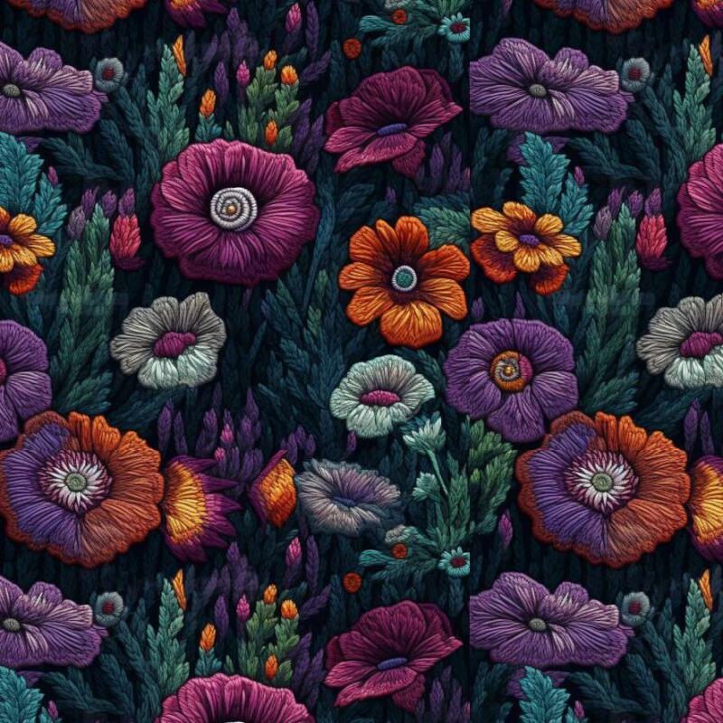 Tricoline Digital Fabricart 3D Flor Bordada Roxa 100% Algodão 1,50M Largura - Variante 1