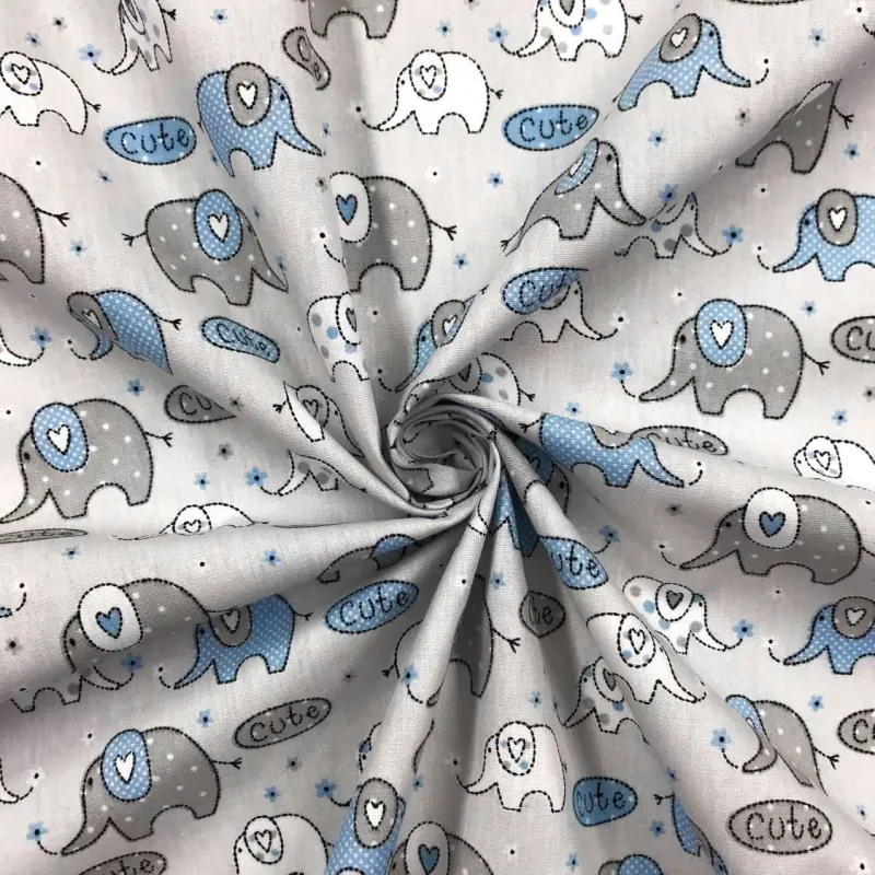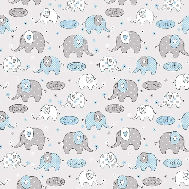 Tricoline Estampada - Elefante Cute Azul Bebê - 100% Algodão - 1,50M Largura - Variante 1
