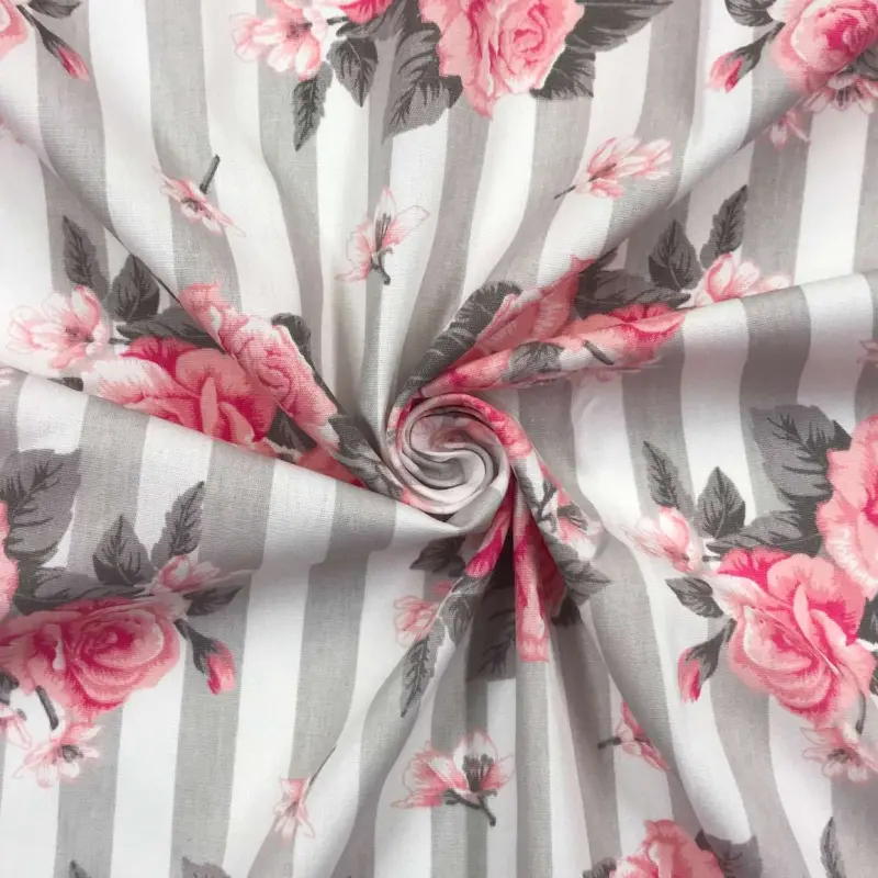 Tricoline Fernando Maluhy - Rosas Com Listras - 100% Algodão - C01