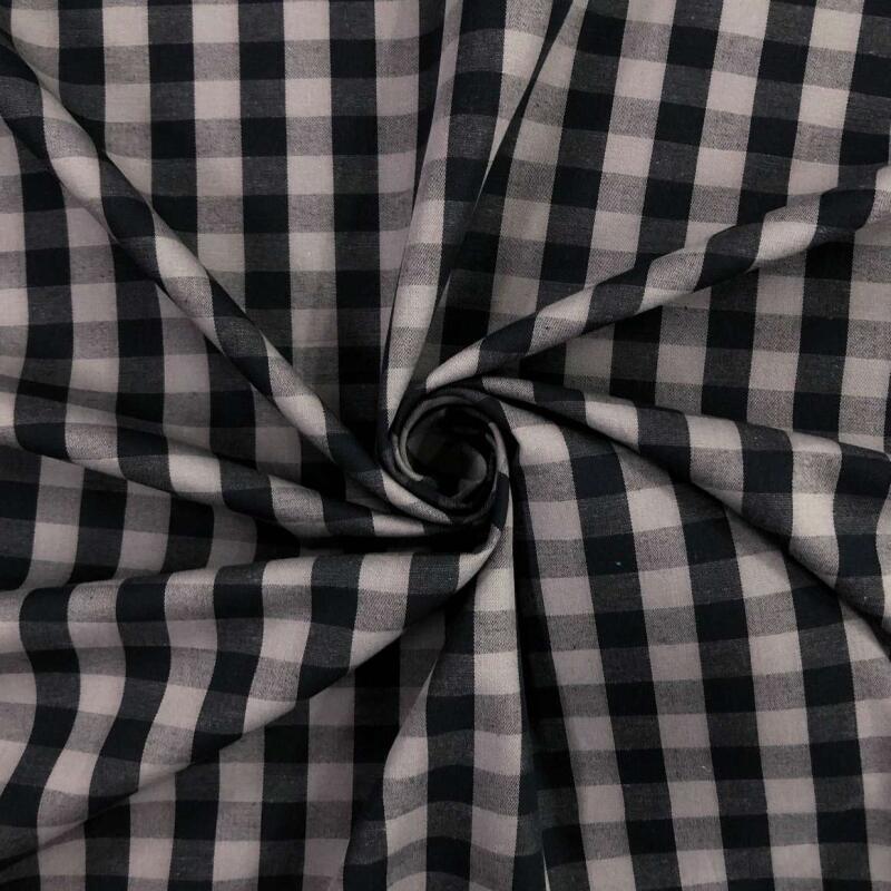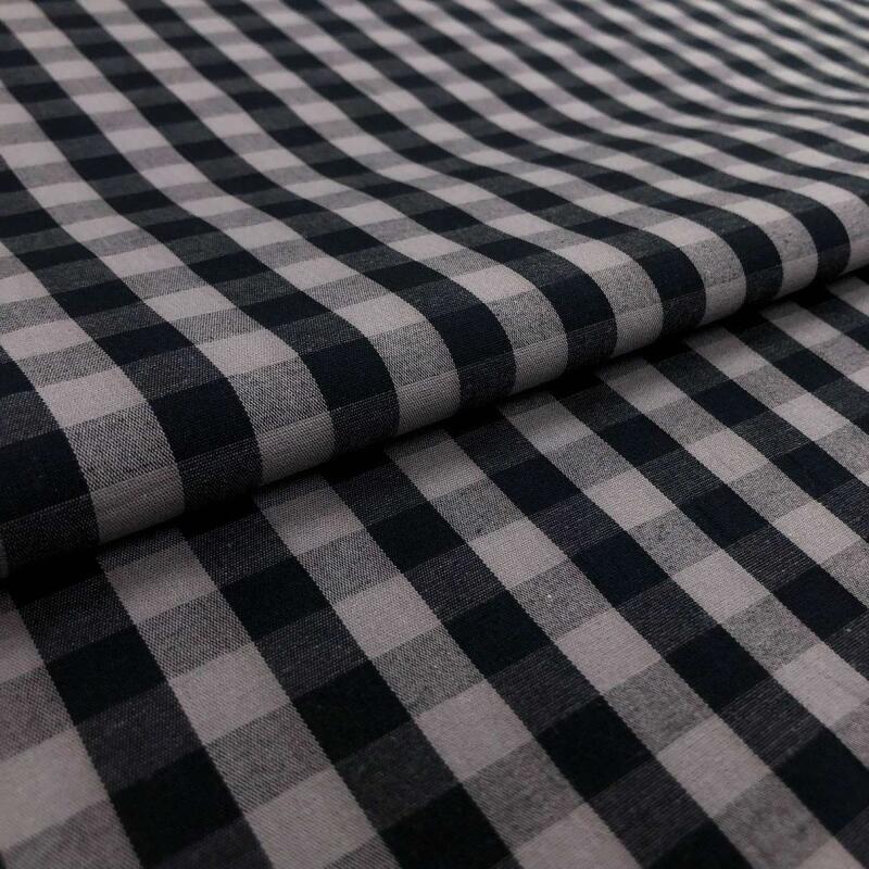 Tricoline Xadrez Fio Tinto - Extra Grande - 100% Algodão - Chumbo Com Preto