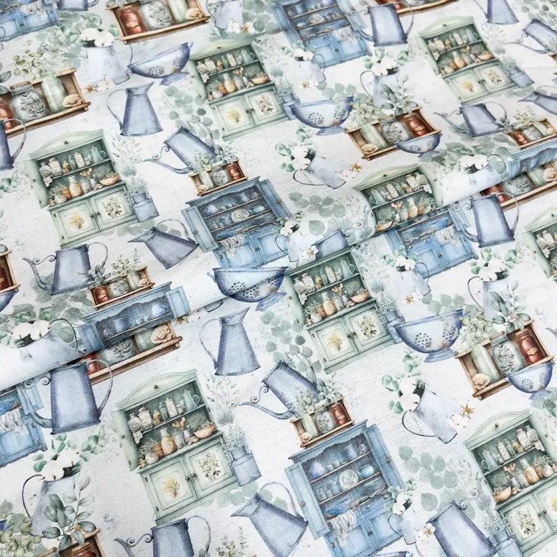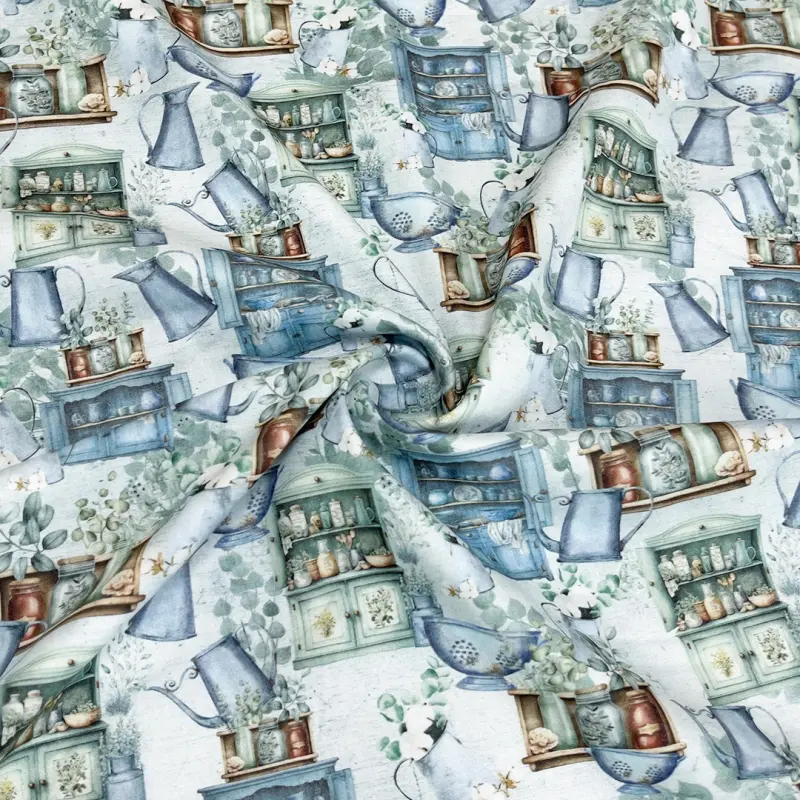 Tricoline Digital Fabricart Cozinha Azul 100% Algodão 1,50M Largura - Variante 1
