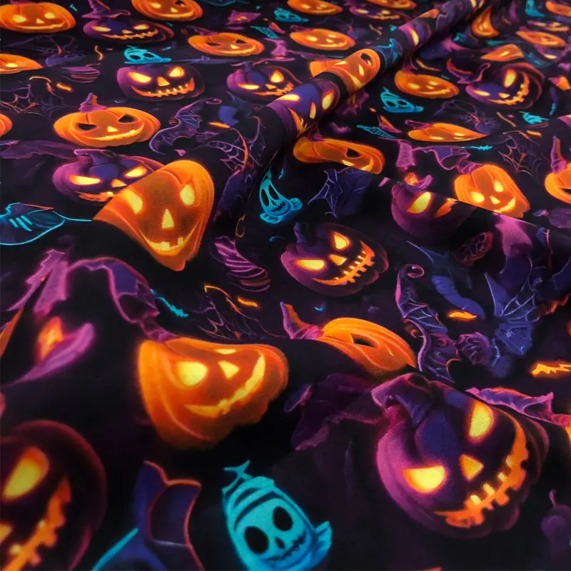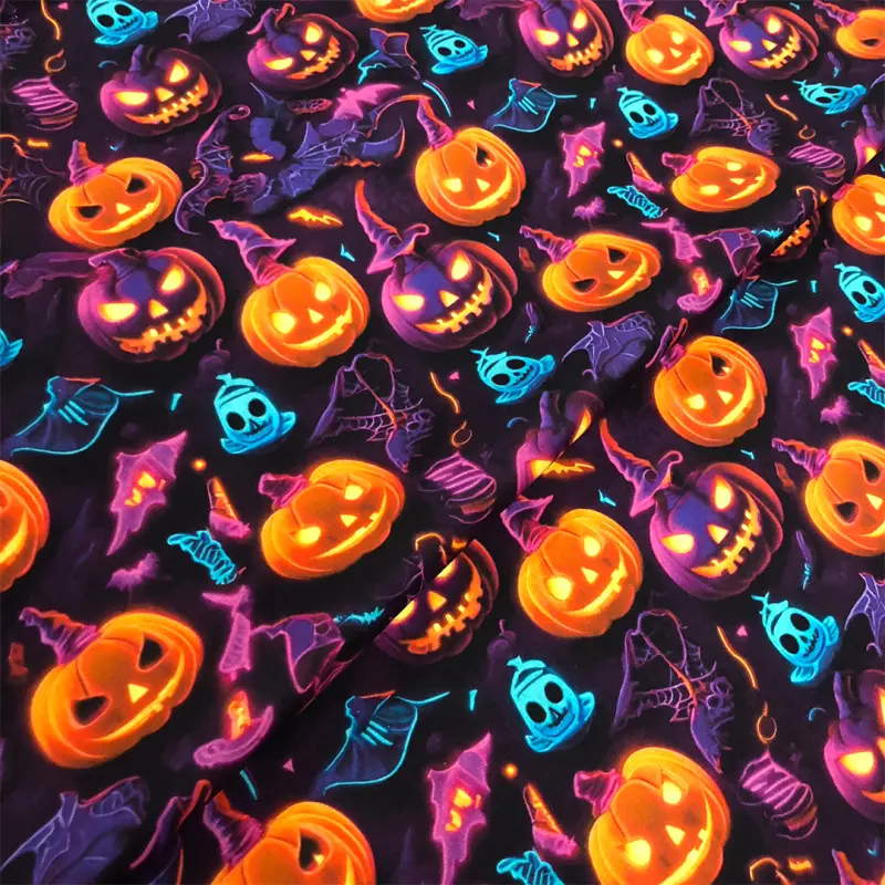 Tricoline Digital Halloween Abóboras Neon 100% Algodão - Variante 1