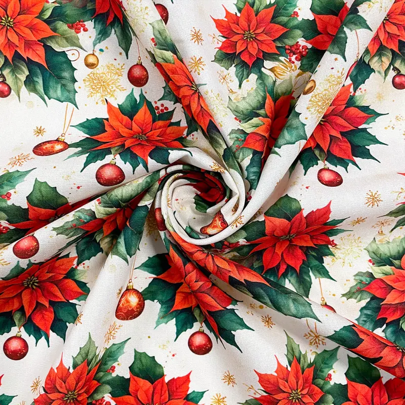 Tricoline Digital Fernando Maluhy Natal Flores Clássicas Fundo Creme 100% Algodão 1,50M Largura - C01