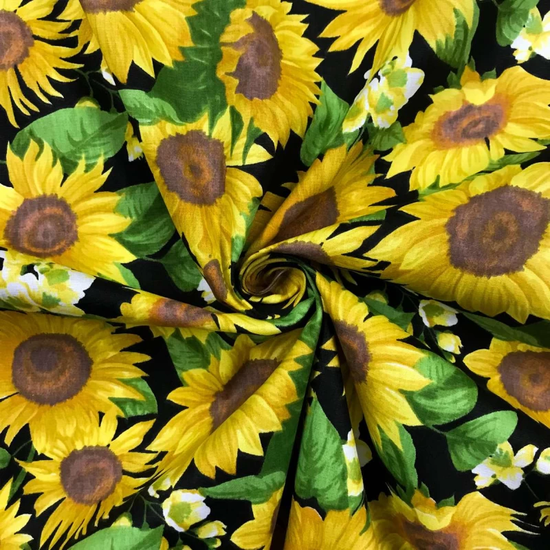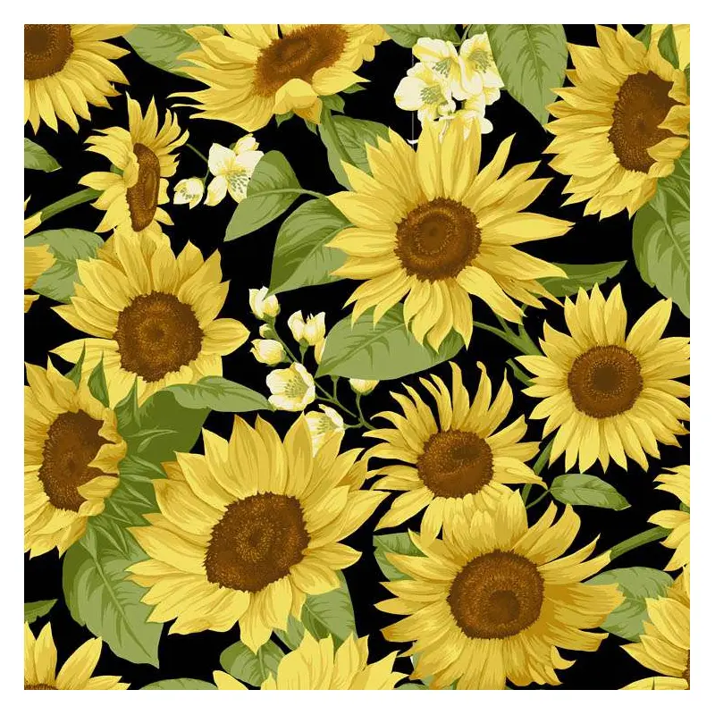 Tricoline Fernando Maluhy - Girassol Fundo Preto - 100% Algodão - C01