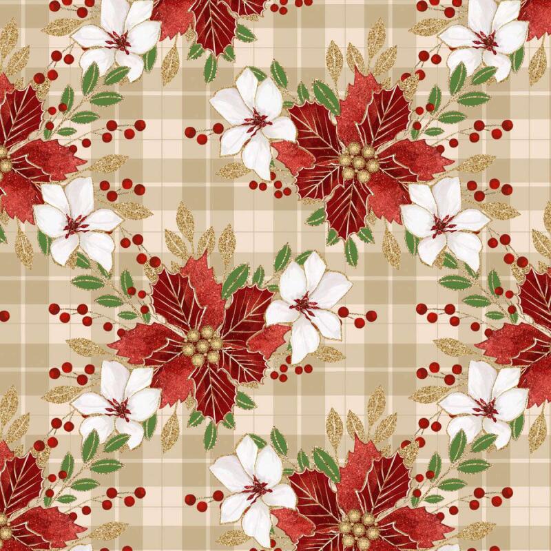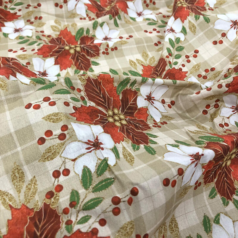 Tricoline Digital Flores De Natal Glitter 100% Algodão 1,50M Largura - Variante 1