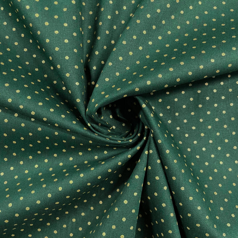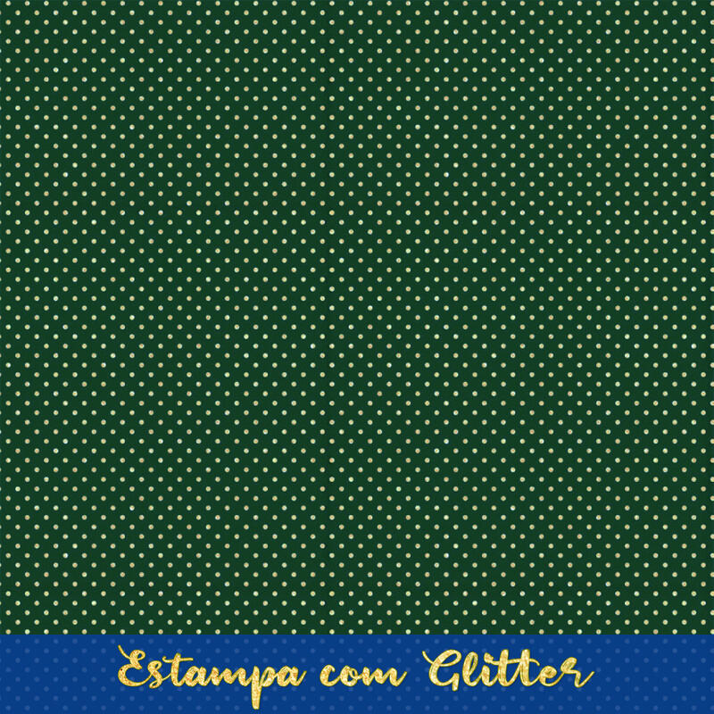 Tecido Tricoline Natal Poá Com Glitter Dourado 100% Algodão 1,50M Largura - Verde Natal