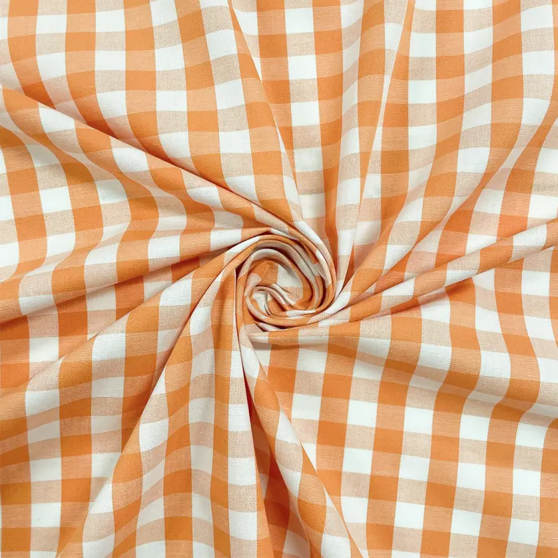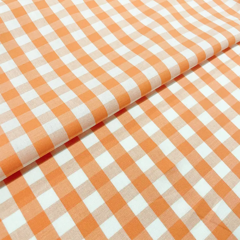 Tricoline Xadrez Fio Tinto - Extra Grande - 100% Algodão - Laranja