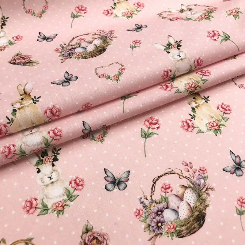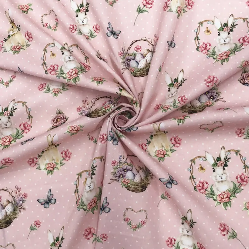 Tricoline Digital Páscoa Fundo Poazinho Rosa 100% Algodão 1,50M Largura - Variante 1