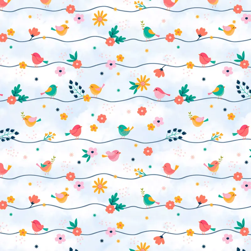 Tricoline Estampada Lovely Birds 100% Algodão 1,50M Largura - Variante 1