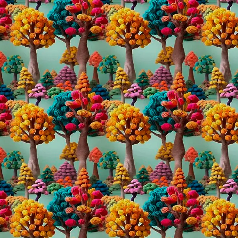 Tricoline Digital Fabricart Árvores Croche 100% Algodão 1,50M Largura - Variante 1
