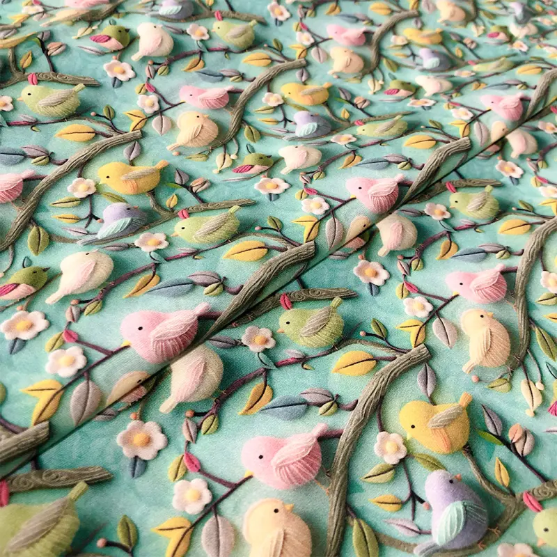 Tricoline Fabricart Digital 3D Pássaros Delicados 100% Algodão 1,50M Largura - Variante 1