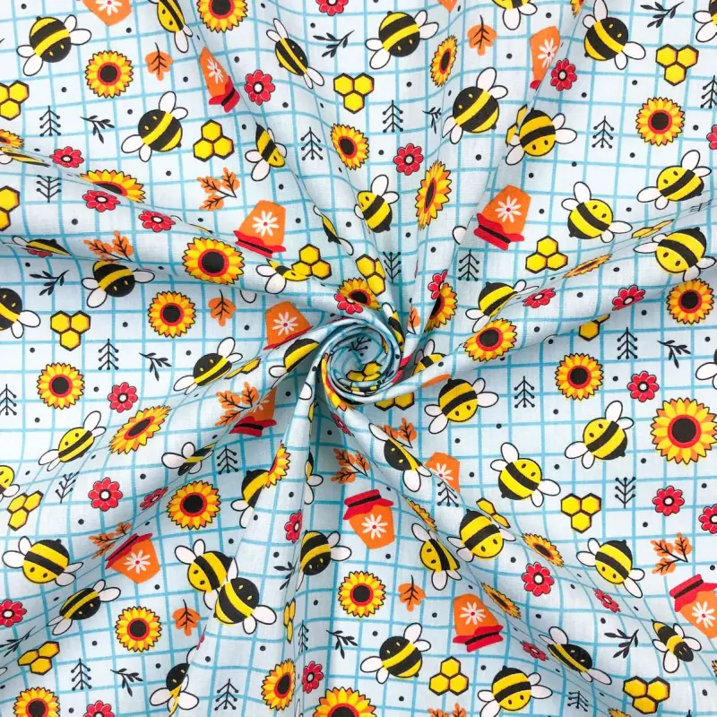Tecido Tricoline - Abelhinhas Com Girassol - 100% Algodão - 1,50M Largura - Variante 1