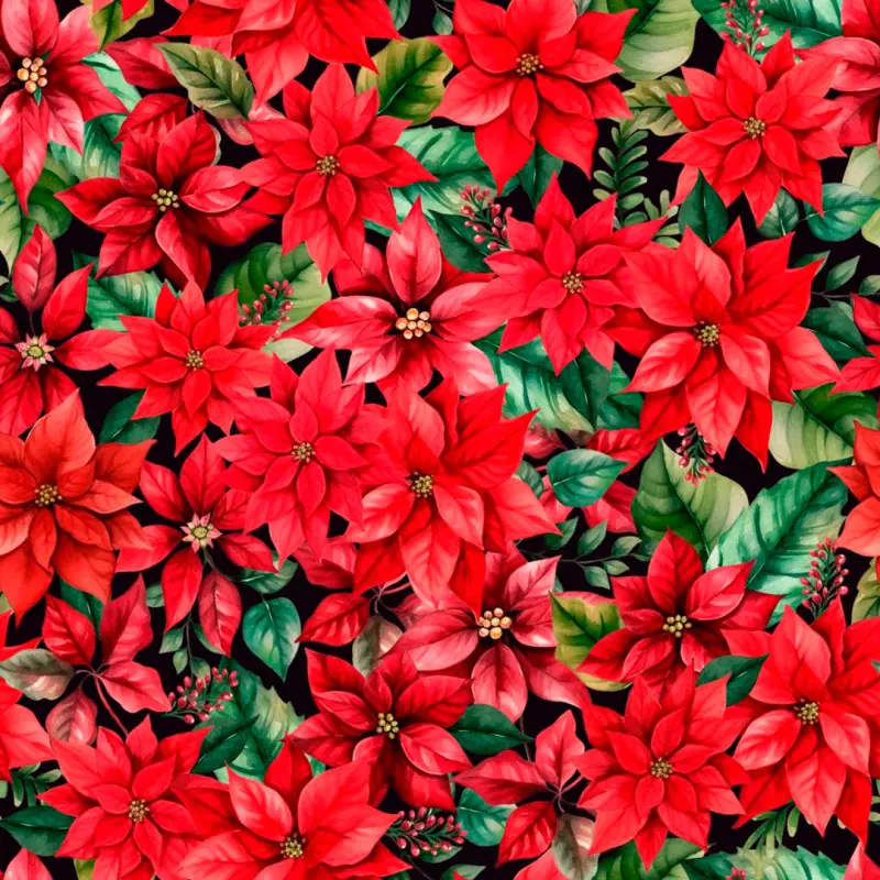 Tricoline Digital Flor Vermelha Natalina 100% Algodão - Variante 1