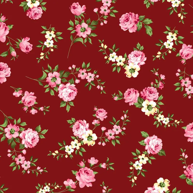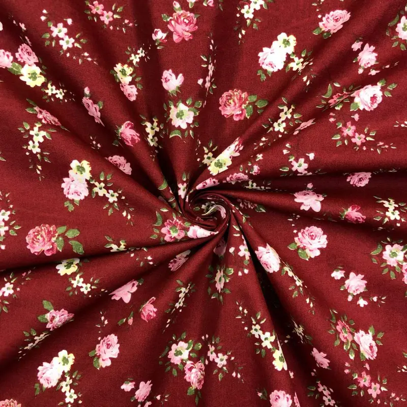 Tricoline Estampada - Flores Fundo Bordo - 100% Algodão - 1,50M Largura - Variante 1