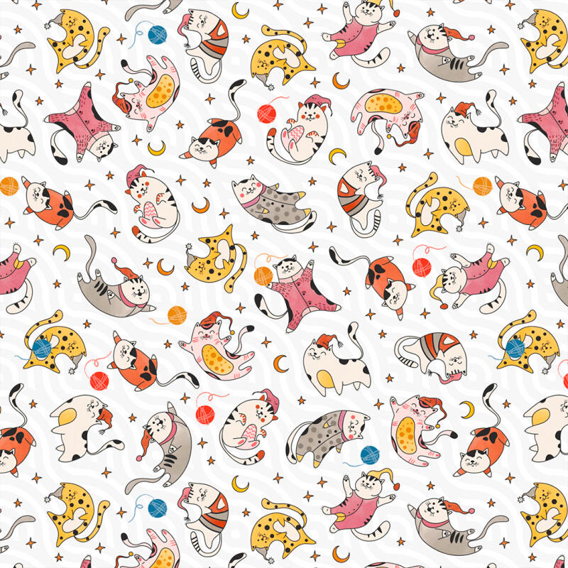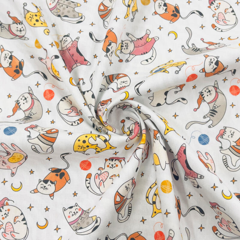 Tricoline Estampada Gatinhos Divertidos 100% Algodão 1,50M Largura - Variante 1