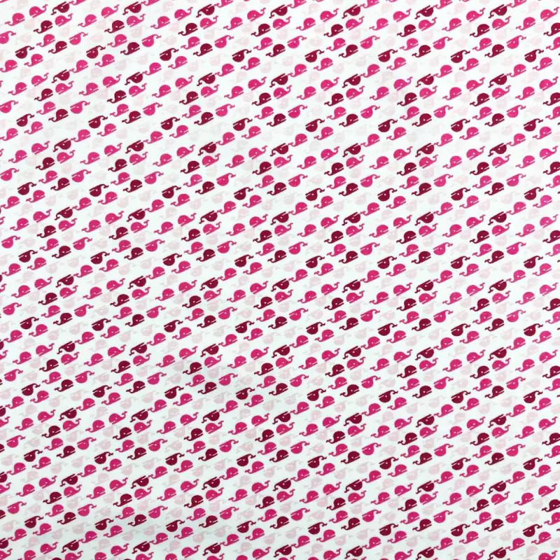 Tricoline Estampada - Baleia - Promoção - Rosa