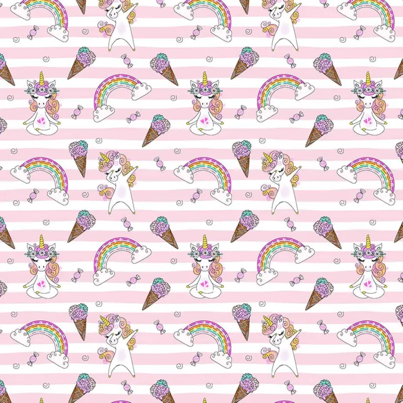 Tricoline Estampada - Unicórnio Listra Rosa - 100% Algodão - 1,50M Largura - Variante 1