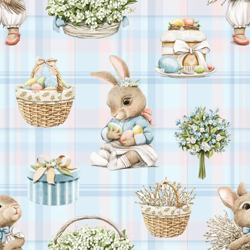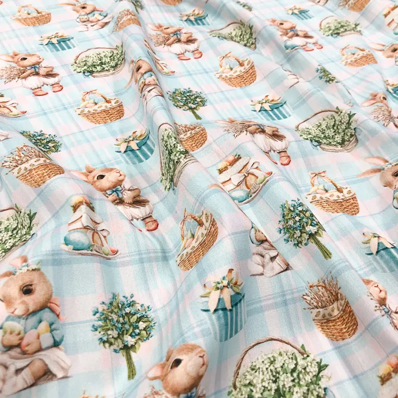 Tricoline Estampada Páscoa Azul Romantic 100% Algodão - Variante 1