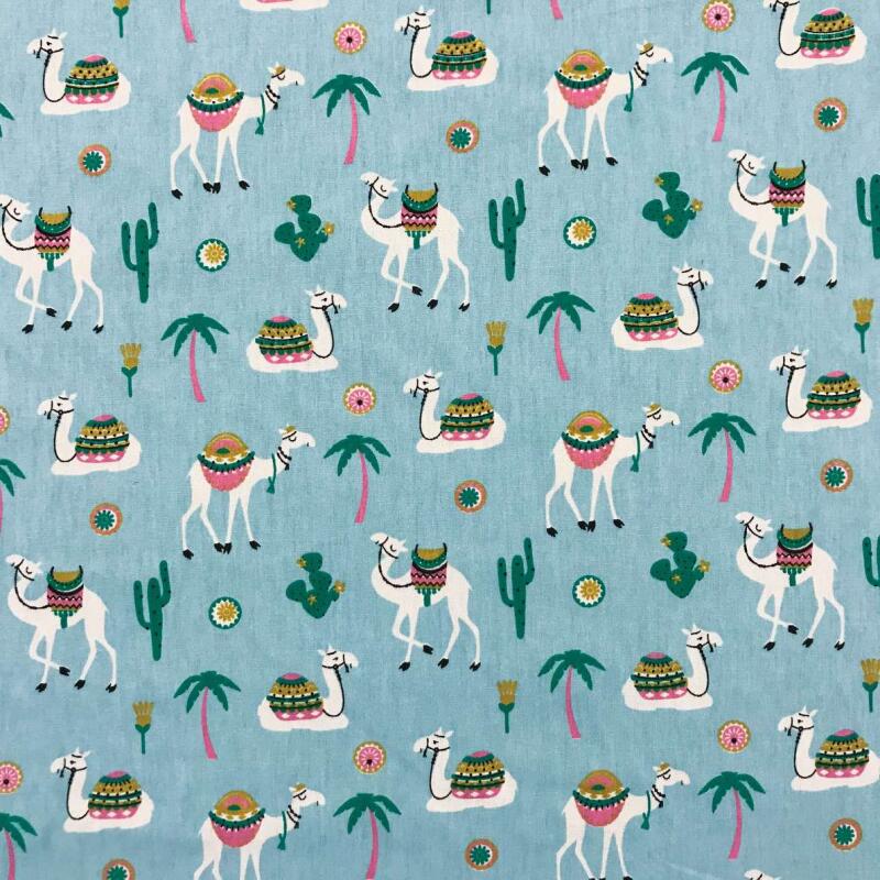 Tricoline Estampada - Lhama Fundo Azul - 100% Algodão - 1,50M Largura - Variante 1