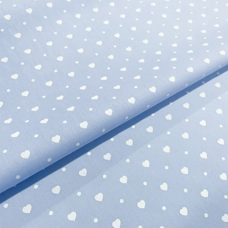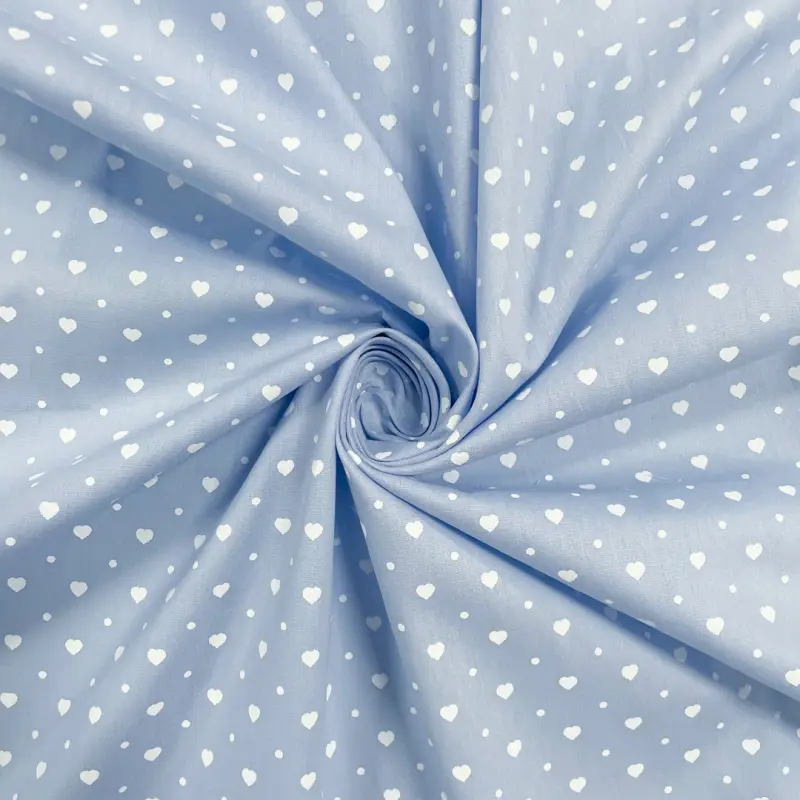 Tricoline Estampada Mini Corações Com Poá 100% Algodão 1,50M Largura - Azul Bebê