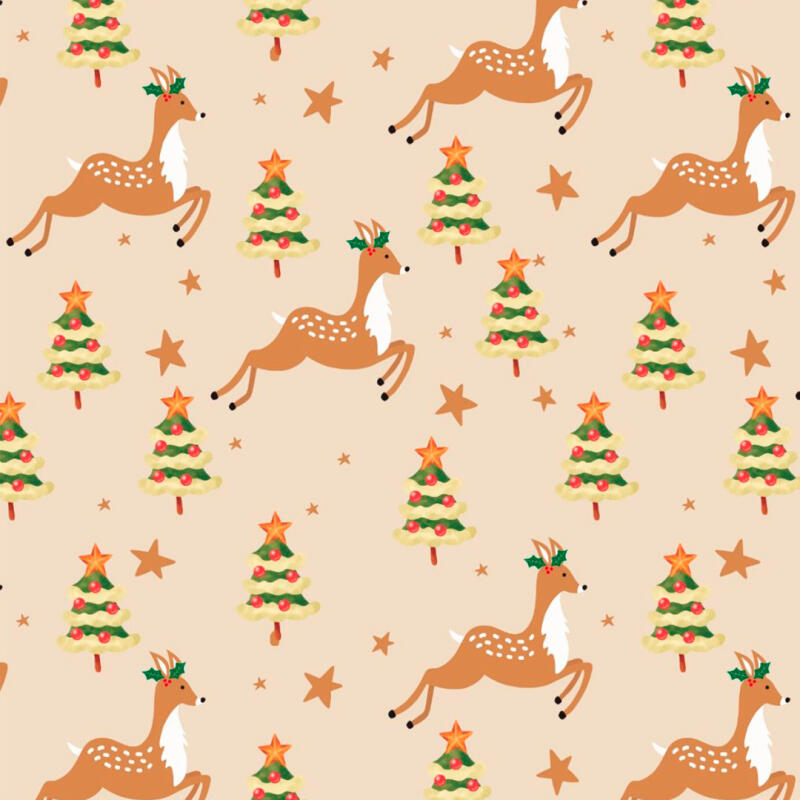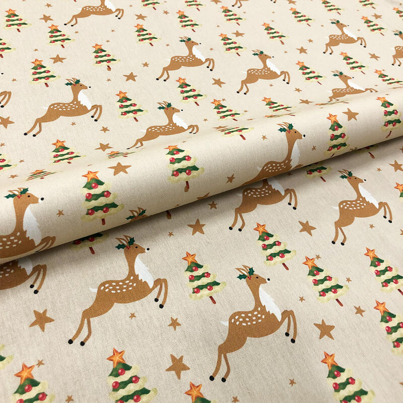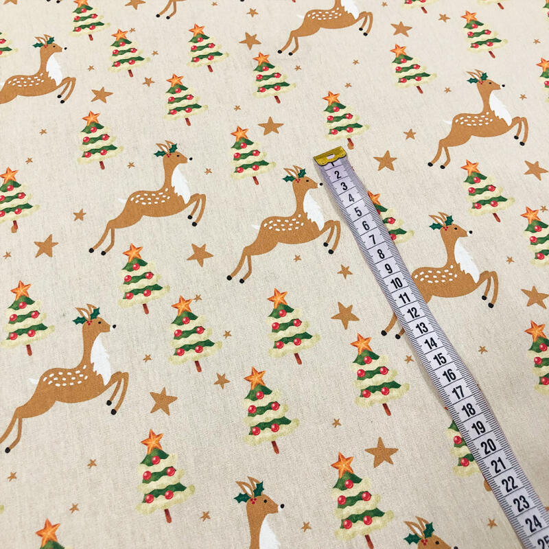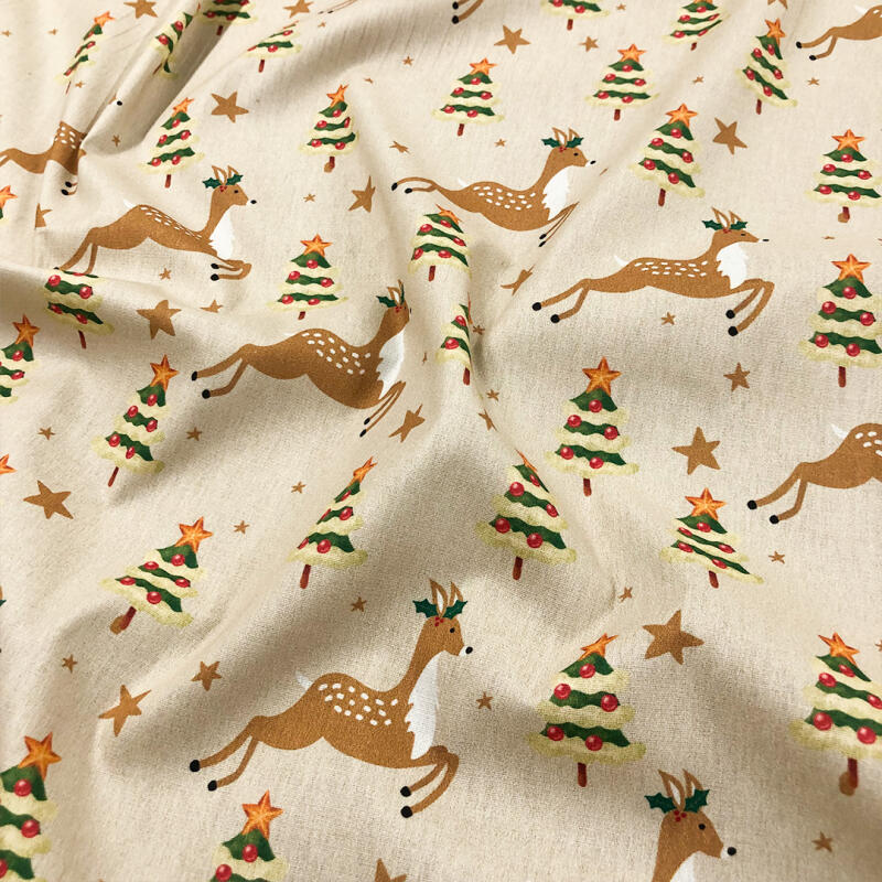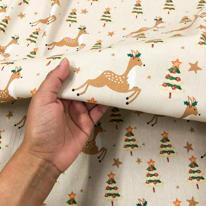Tricoline Estampada Natal Alce Natalino Bege 100% Algodão 1,50M Largura - Variante 1