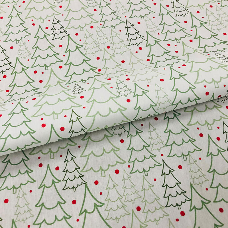 Tricoline Estampada Natal Contorno Pinheiros 100% Algodão 1,50M Largura - Variante 1