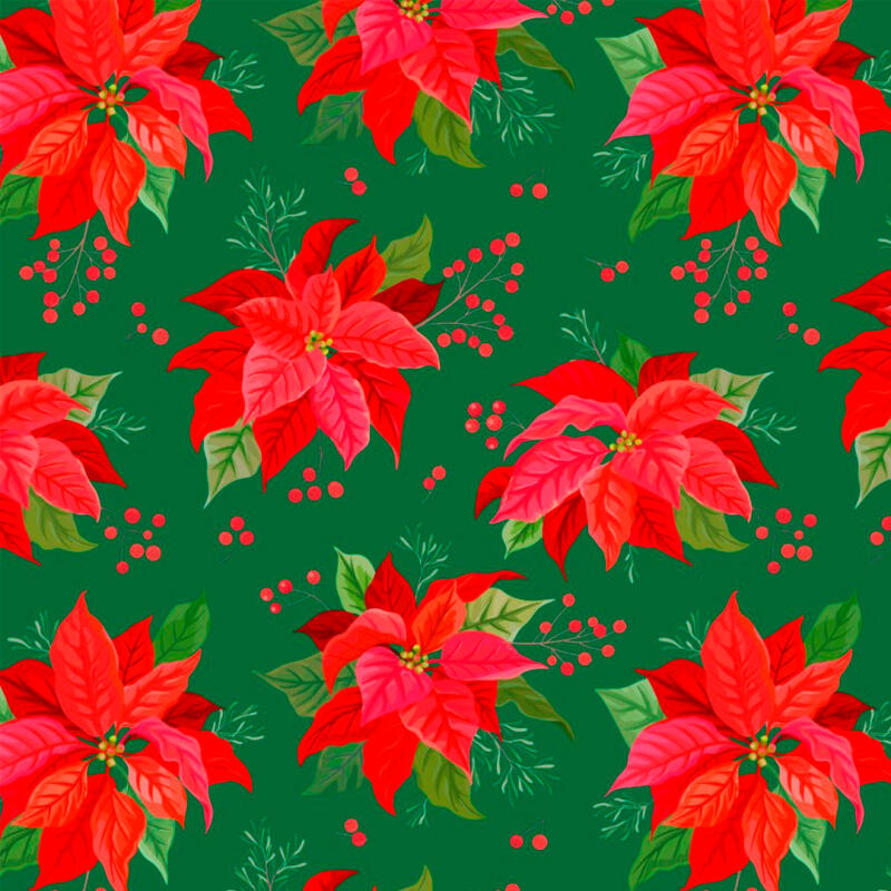 Tricoline Estampada Natal Flor Com Azevinho 100% Algodão 1,50M Largura - Variante 1