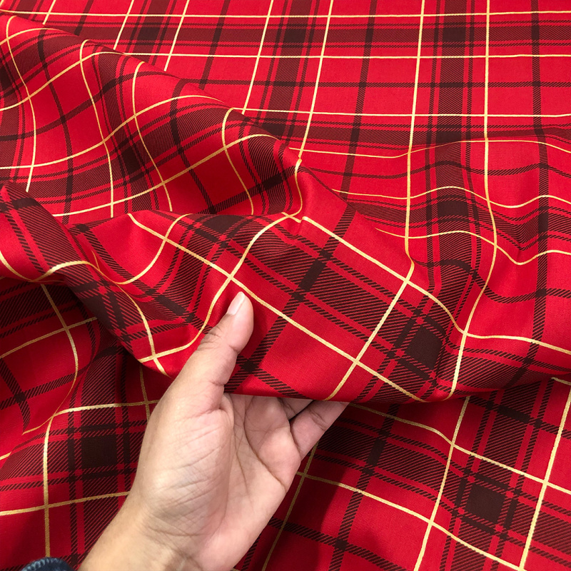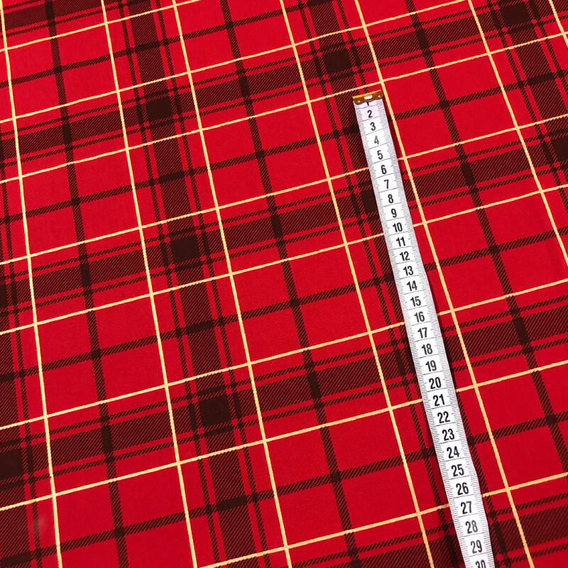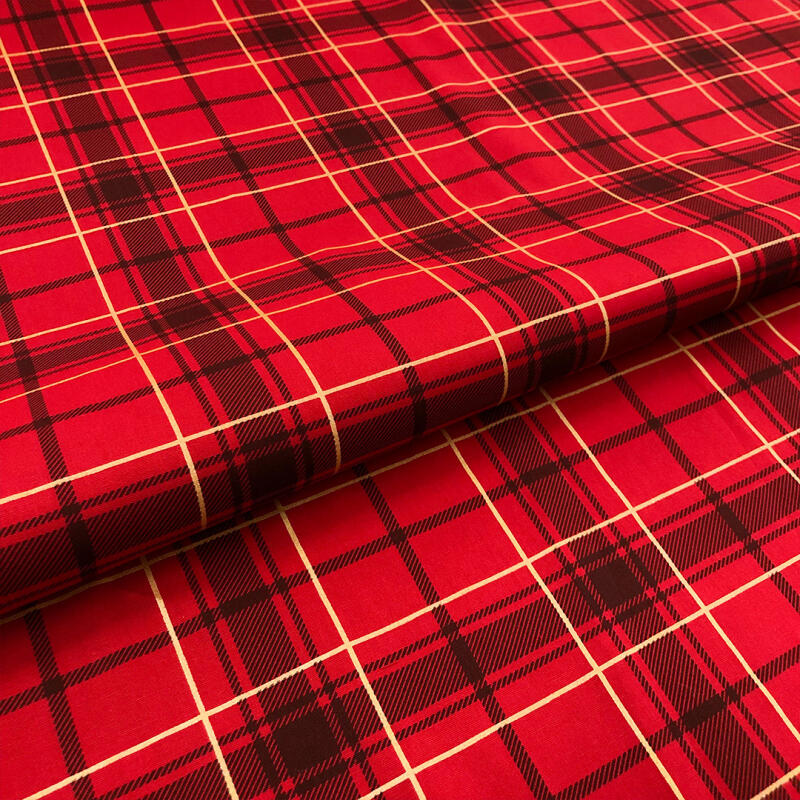 Tricoline Estampada Natal Xadrez Com Dourado 100% Algodão 1,50M Largura - Vermelho