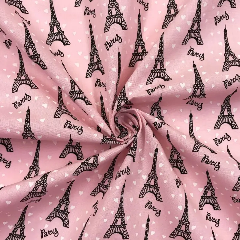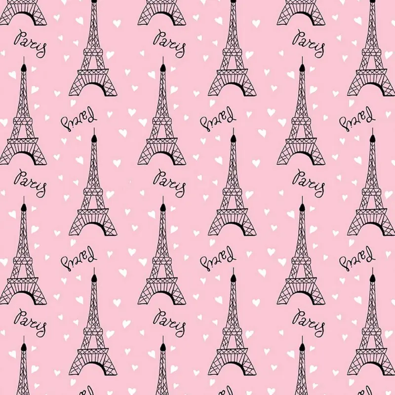 Tricoline Estampada - Paris Rosa Bebê - 100% Algodão - 1,50M Largura - Variante 1