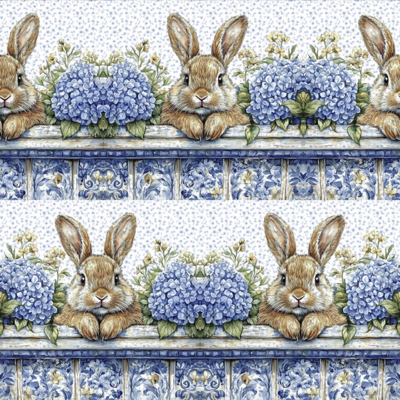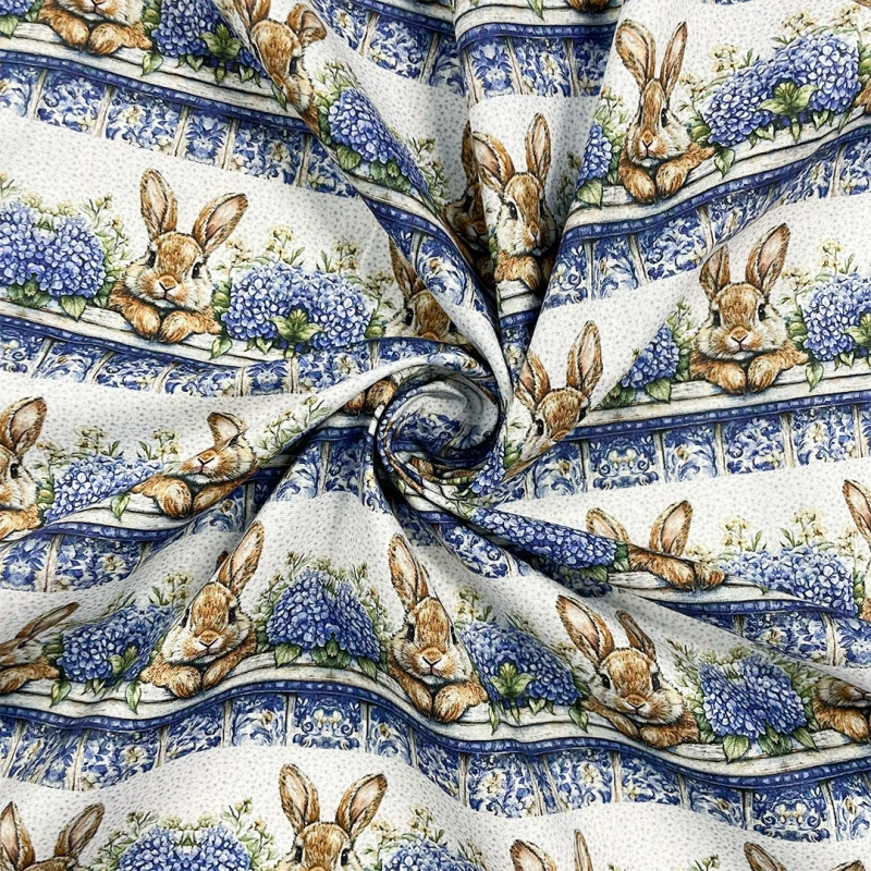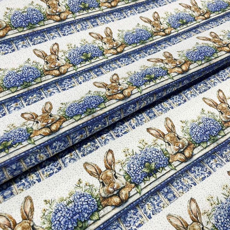Tricoline Estampada Páscoa Barrado Hortências Azuis 100% Algodão - Variante 1