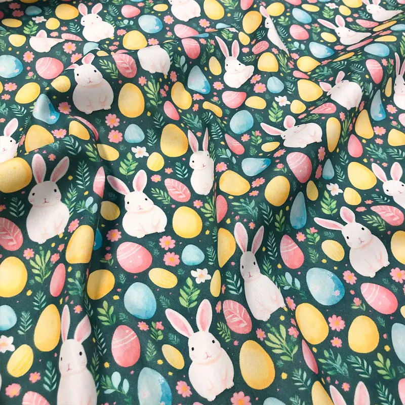 Tricoline Estampada Páscoa Ovinhos Fundo Verde 100% Algodão - Variante 1