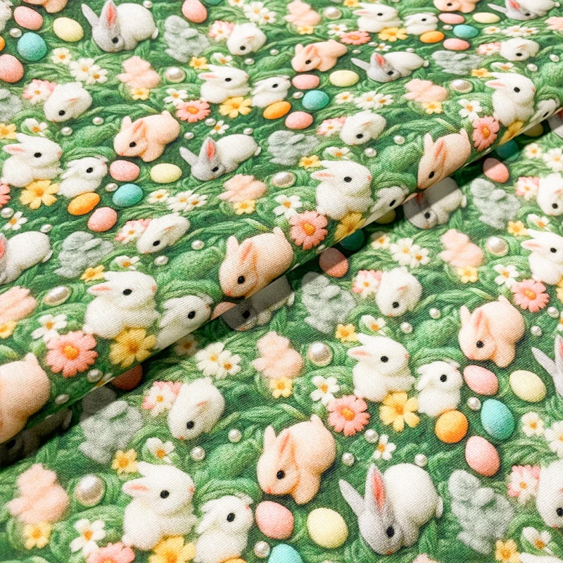 Tricoline Estampada Páscoa Pérolas E Coelhinhos 100% Algodão - Variante 1