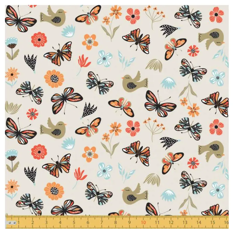 Tecido Tricoline - Pássaros E Borboletas - 100% Algodão - 1,50M Largura - Variante 1