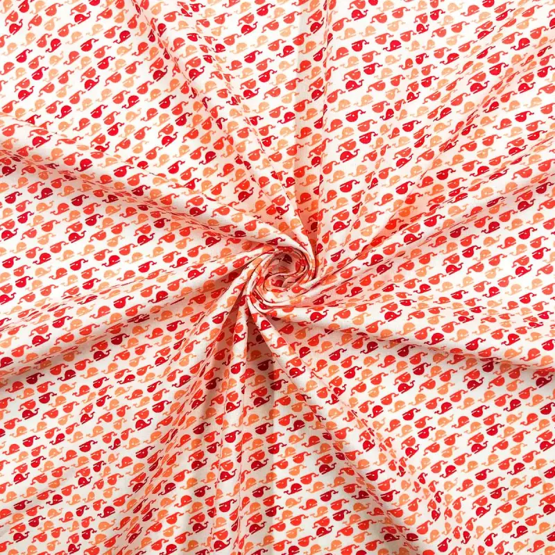 Tricoline Estampada - Baleia - Promoção - Vermelho