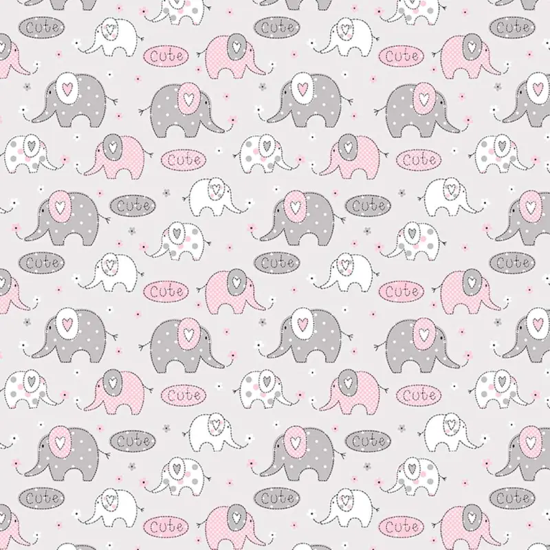 Tricoline Estampada - Elefante Cute Rosa Bebê - 100% Algodão - 1,50M Largura - Variante 1