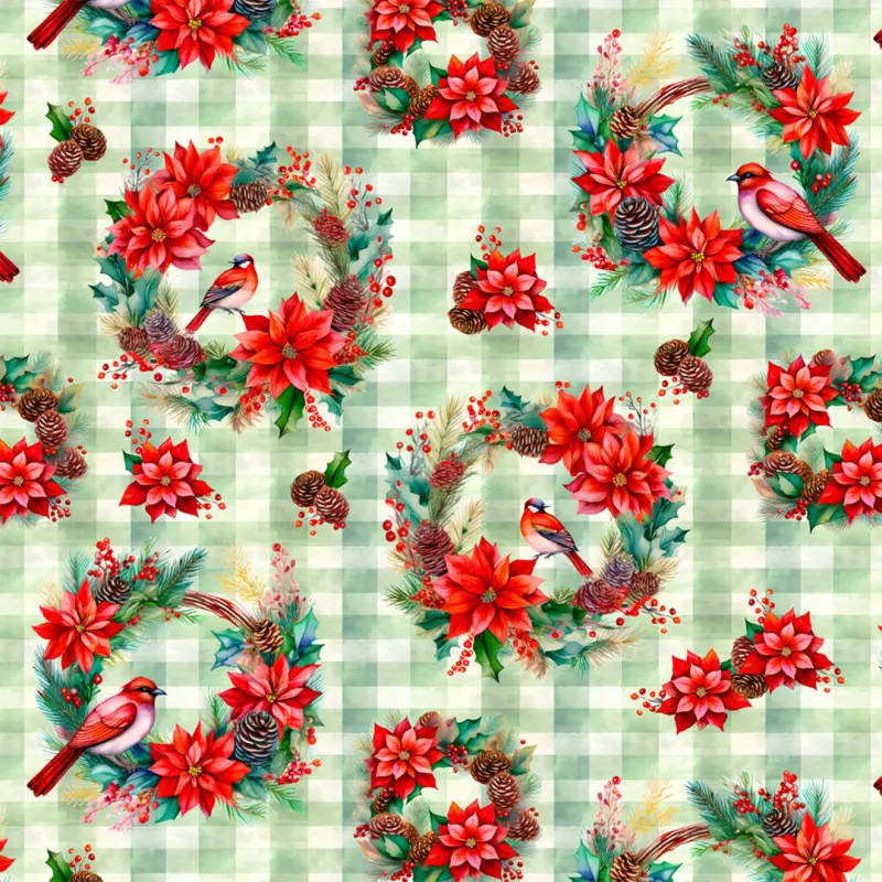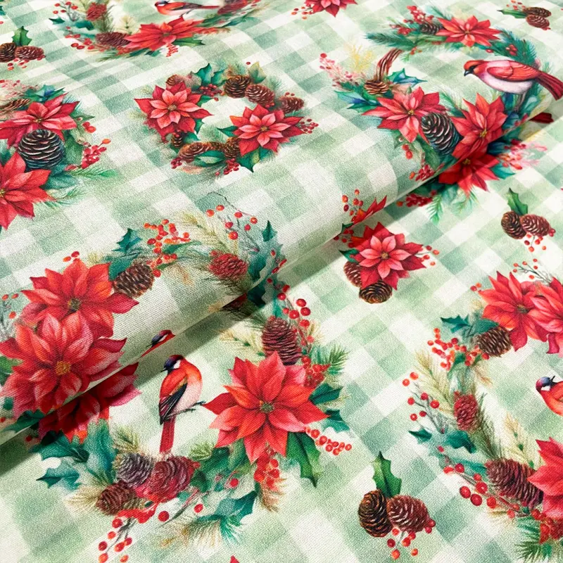 Tricoline Digital Natal Coroa Floral 100% Algodão - Variante 1