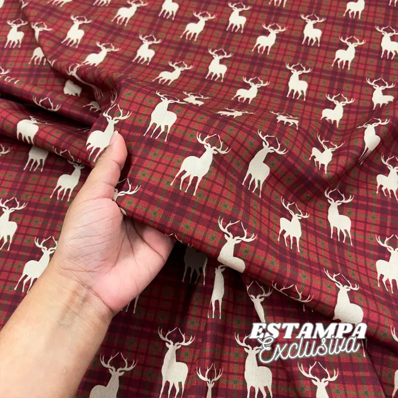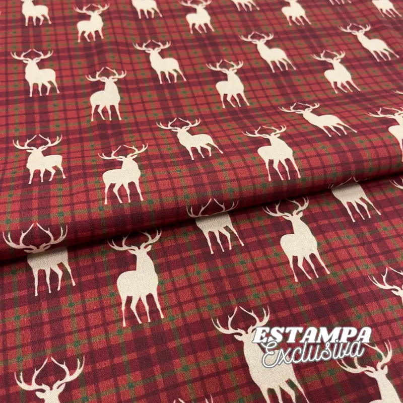 Tricoline Exclusiva Coleção Jlm Natal Boho 100% Algodão 1,50M Largura - Cervo Fundo Xadrez