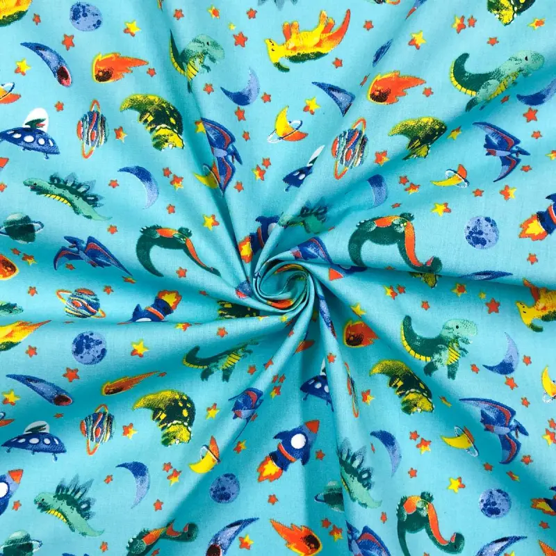Tricoline Estampada - Elefante Dino Espaço - 100% Algodão - 1,50M Largura - Variante 1