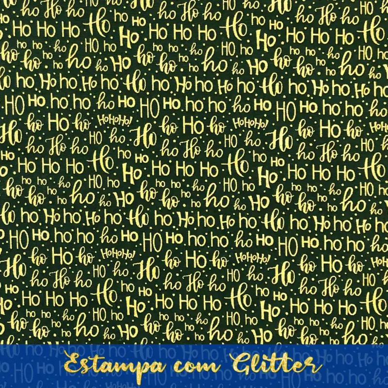 Tecido Tricoline Natal - Hohoho Glitter Dourado - 100% Algodão - 1,50M Largura - Variante 59