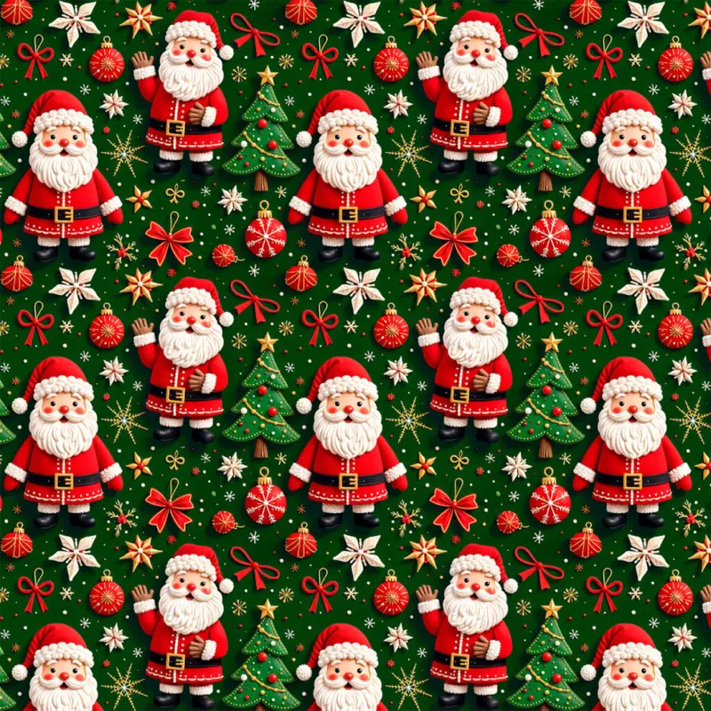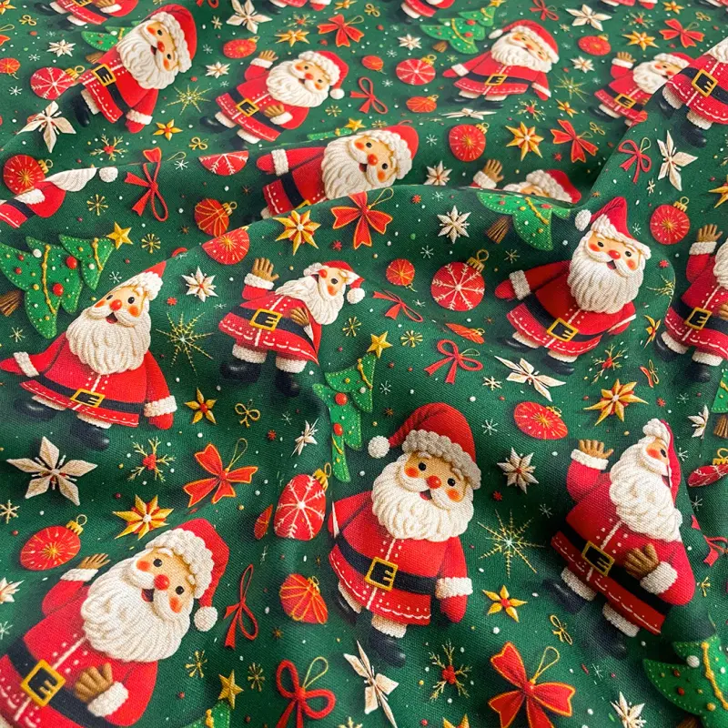 Tricoline Digital Natal Papai Noel Fundo Verde 100% Algodão - Variante 1