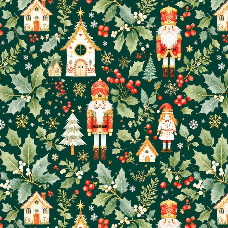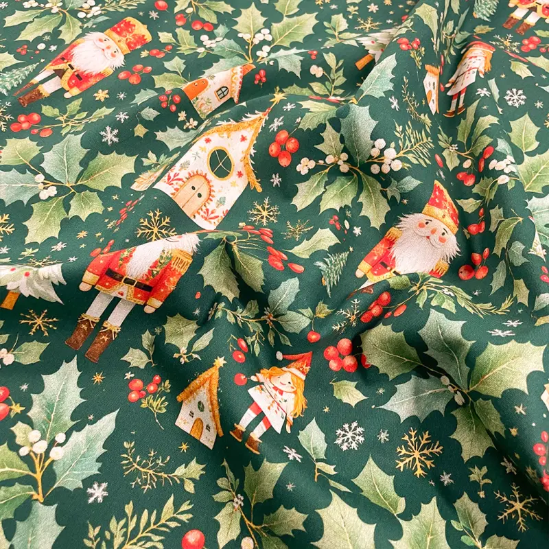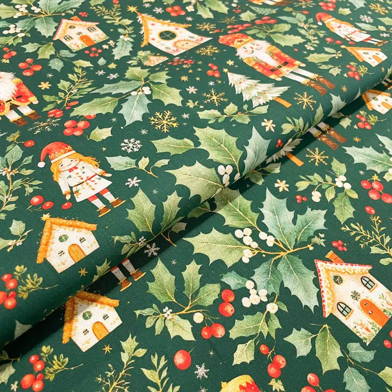 Tricoline Digital Natal Soldadinho Fundo Verde 100% Algodão - Variante 1