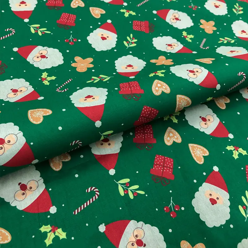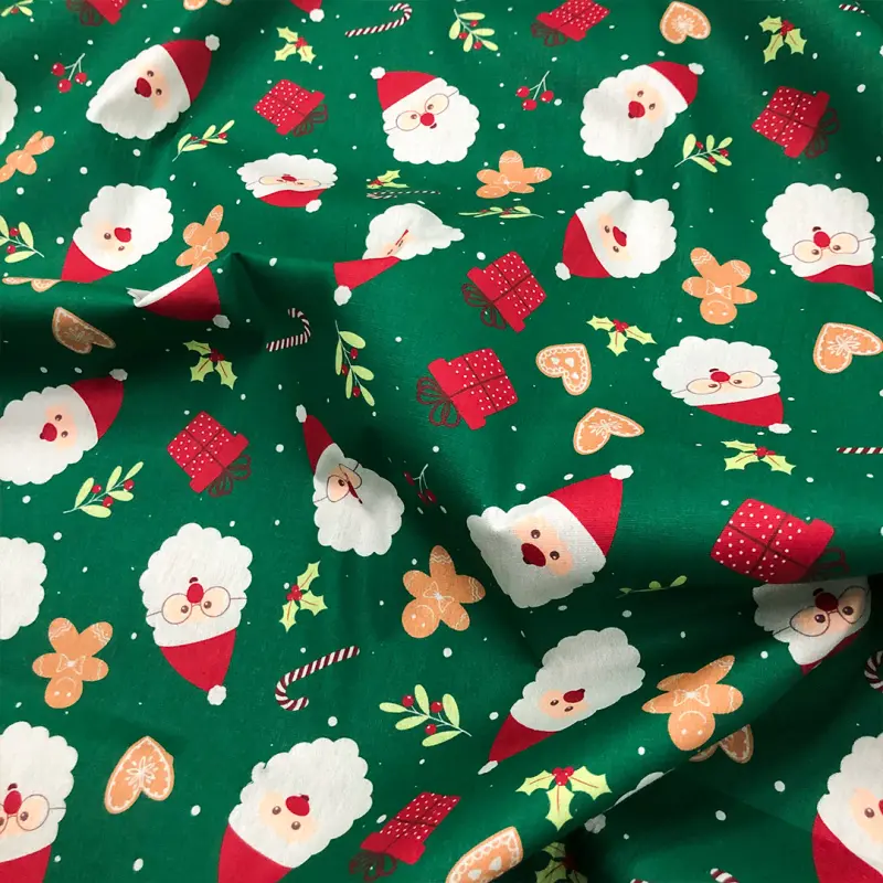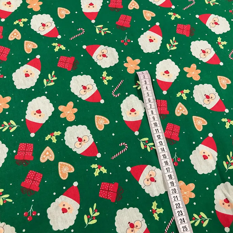Tricoline Estampada Natal Rostinho Noel Fundo Verde 100% Algodão 1,50M Largura - Variante 1