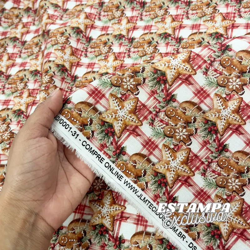 Tricoline Exclusiva Coleção Jlm Biscoitos Natalinos 100% Algodão 1,50M Largura - Variante 1