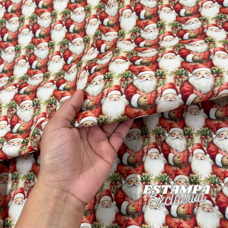 Tricoline Exclusiva Coleção Jlm Papai Noel Sobreposto 100% Algodão 1,50M Largura - Variante 1
