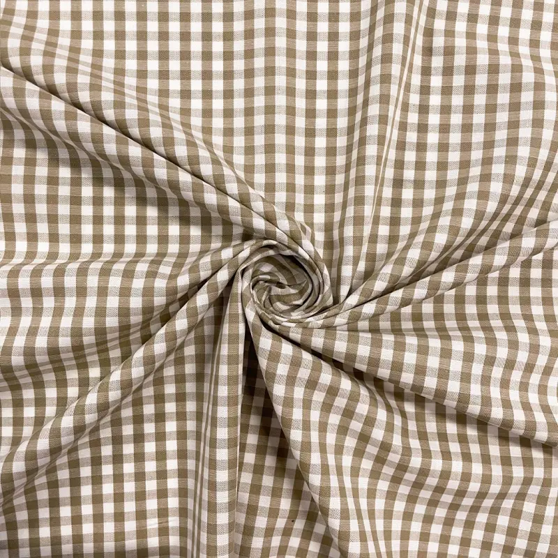 Tricoline Xadrez Fio Tinto - Médio - 100% Algodão - Bege Escuro