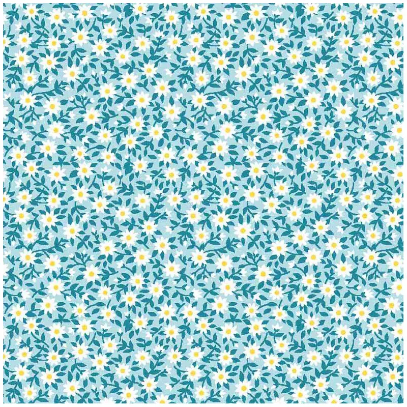 Tricoline Estampada - Ramos Verde Água - 100% Algodão - 1,50M Largura - Variante 1