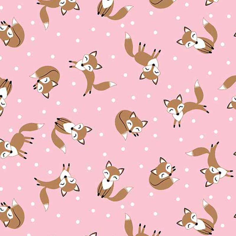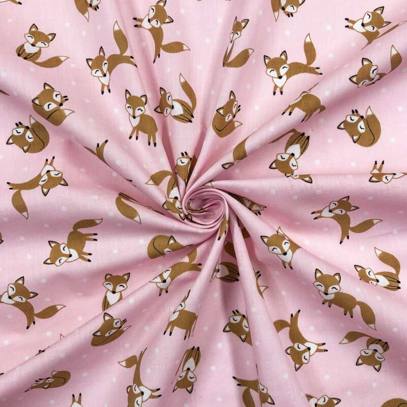 Tricoline Estampada - Raposinha Rosa Bebê - 100% Algodão - 1,50M Largura - Variante 1