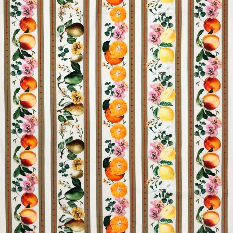 Tricoline Digital Barrado Flor E Fruta 100% Algodão - Variante 1